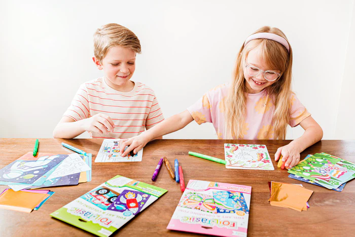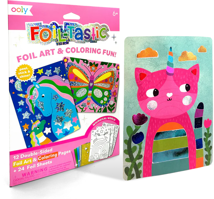 Deze foliekunstset is de perfecte balans tussen kleuren en knutselen! Het bevat 12 dubbelzijdige pagina's, elk met een ander ontwerp, waaronder een eenhoorn, narwal en andere mythische wezens! Eén kant van elke pagina is om te versieren met glanzende folie, de andere is om in te kleuren. Er worden ook 24 heldere folievellen meegeleverd, zodat je kleintje zijn eigen glanzende meesterwerk kan creëren. Deze foliekunst is voor kinderen die graag een middag creatief bezig zijn!