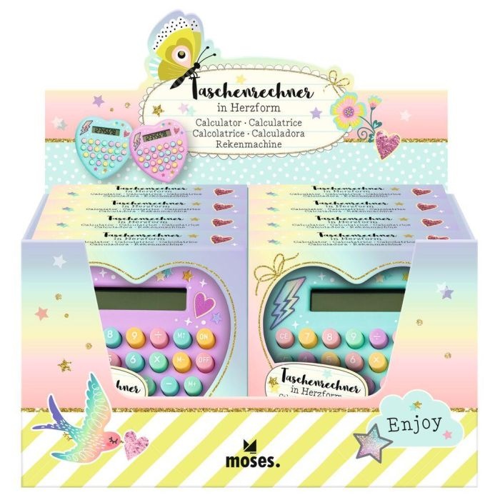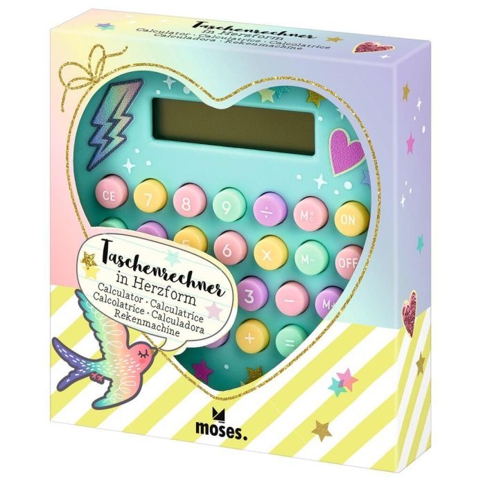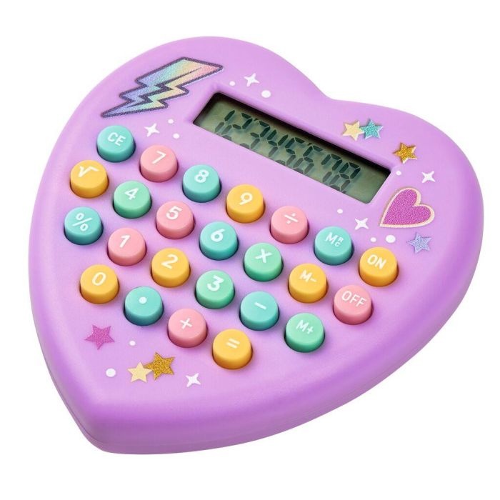 Kleine dagelijkse hulp voor thuis en onderweg: de schattige hartvormige rekenmachine maakt kleine rekentaken gemakkelijker voor kinderen en jongeren, altijd en overal. Het prachtige design in pastelpaars of turquoise en de coole ster-, bliksem- en hartmotieven maken de kleine rekenmachine tot een echte blikvanger.