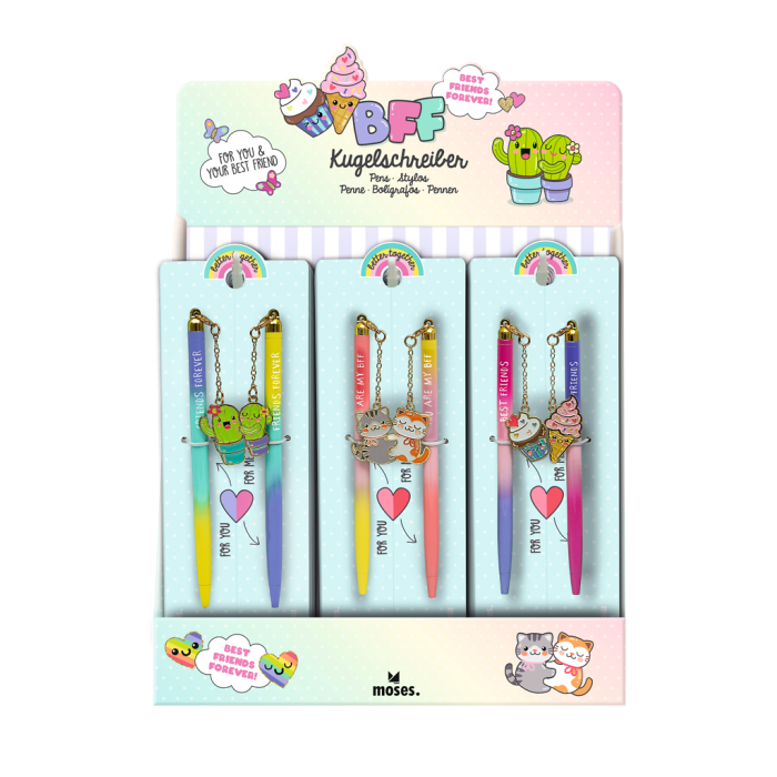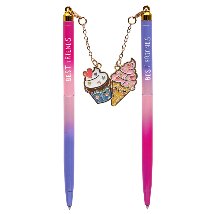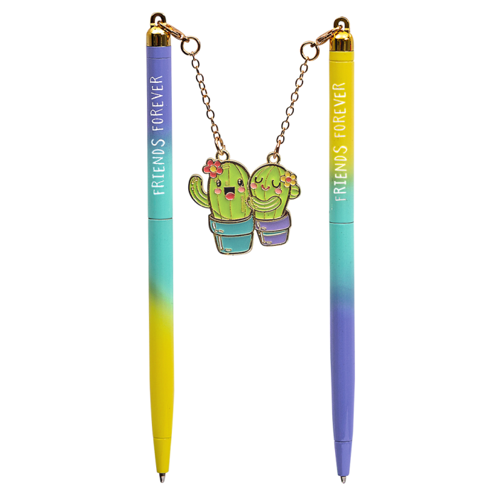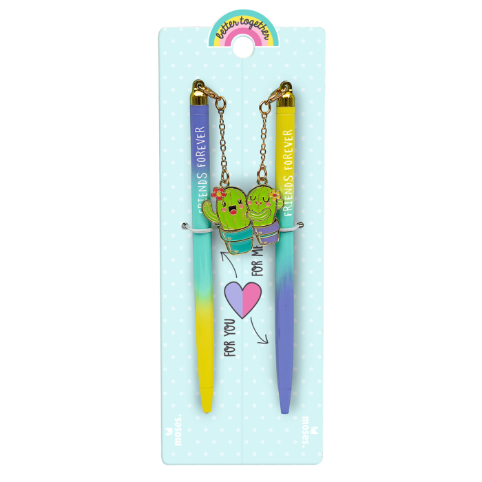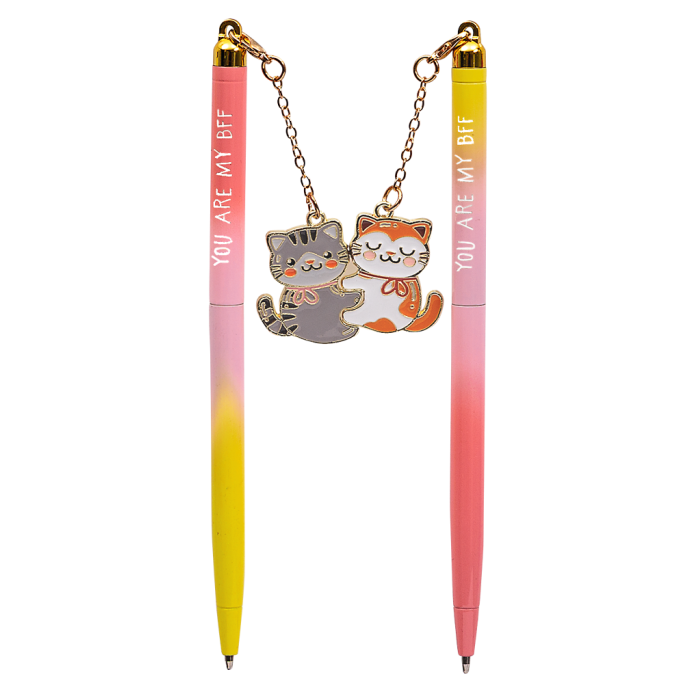 De pennen zijn voorzien van een schattig magnetisch bedeltje, bevestigd aan een deelbare vriendschapskaart. Houd er één voor jezelf en geef de andere aan je BFF.