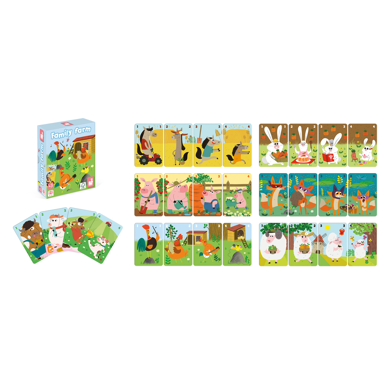 Happy Families – Family Farm van Janod is een gezellig kwartetkaartspel waarmee kinderen de dierenfamilies op de boerderij leren kennen. Het spel is speels, leerzaam en stimuleert geheugen, concentratie en strategisch denken.