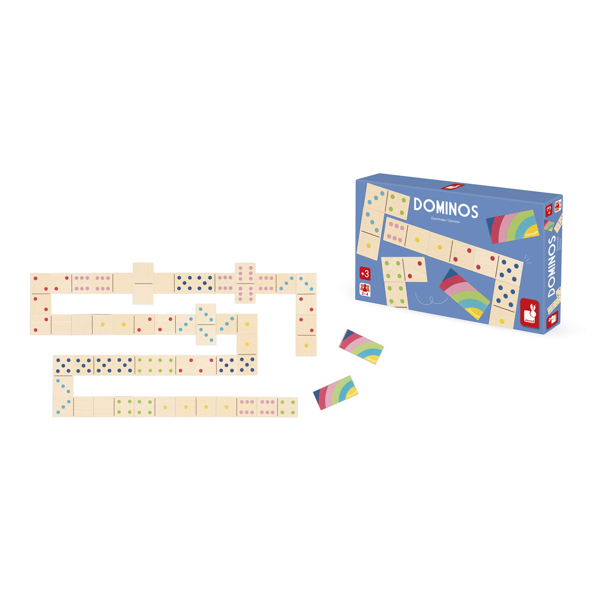 Oh, een dubbele 6! Met deze kleurrijke dominoset leren kinderen vanaf 3 jaar cijfers en kleuren herkennen, terwijl ze tegelijkertijd hun logisch denken en observatievermogen ontwikkelen. Spelen is heel eenvoudig! Combineer de dominostenen door dezelfde nummers te plaatsen om een lange ketting te vormen. En dat is nog niet alles: elk nummer heeft een bijbehorende kleur. Een echte stimulans om kinderen te helpen de kleuren makkelijker te herkennen. De speler die de meeste dominostenen plaatst, wint! De set bevat 28 stevige en prettig aanvoelende FSC™ houten stukken, perfect voor kleine handjes.