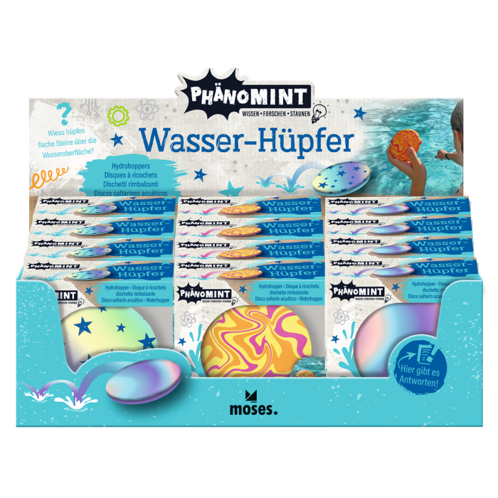 De waterhopper laat je stuiteren in het water zoals je ook stenen laat stuiteren in het water. Met wat oefening kun je hem steeds verder over het water laten springen. Inclusief spannende informatie en fenomenale experimenten. De waterhopper is zacht, dus niet gevaarlijk zoals een steen. Afmeting 7.5 x 2.4 cm.