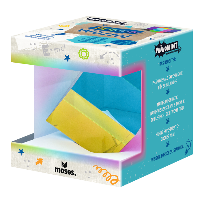 Ontdek hoe licht en kleur samenkomen met deze fascinerende prisma kubus. Door het licht te breken ontstaan mooie kleureffecten die blijven verrassen vanuit elke hoek. Een speelse en leerzame manier om kennis te maken met optica.