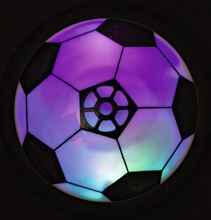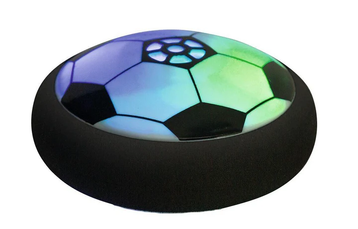 Binnen voetballen zonder iets om te stoten? Dat kan met deze glijdende voetbal met licht! Deze speciale voetbal zweeft over gladde vloeren dankzij een luchtkussen aan de onderkant. Hierdoor glijdt de bal soepel over de vloer en kan er veilig binnenshuis gespeeld worden.