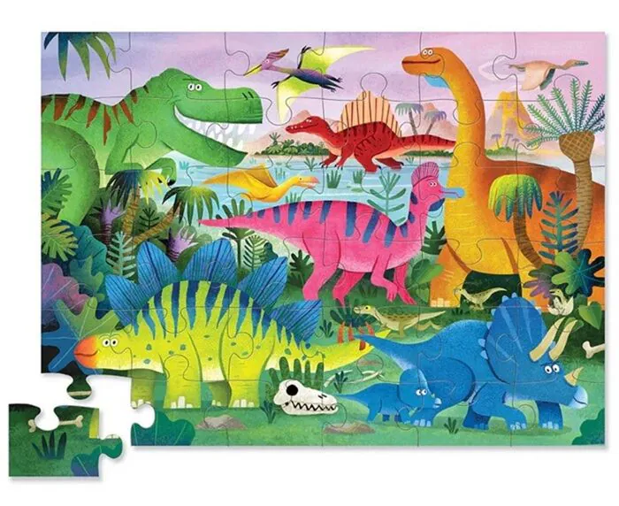 Reis terug naar het tijdperk van de dinosaurussen met de Dino Land puzzel van Crocodile Creek! Deze uitdagende puzzel van 36 stevige stukjes toont een levendige dinosauruswereld, perfect voor kinderen die houden van avontuur en het ontdekken van prehistorische dieren. Spelenderwijs worden fijne motoriek, concentratie en probleemoplossend vermogen gestimuleerd.