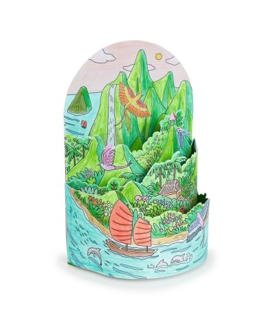 Een spectaculaire kleurplaat die verandert in een decoratief voorwerp zodat je kind zijn/haar kamer kan aankleden! Kleur, zet in elkaar, zet neer en droom weg!