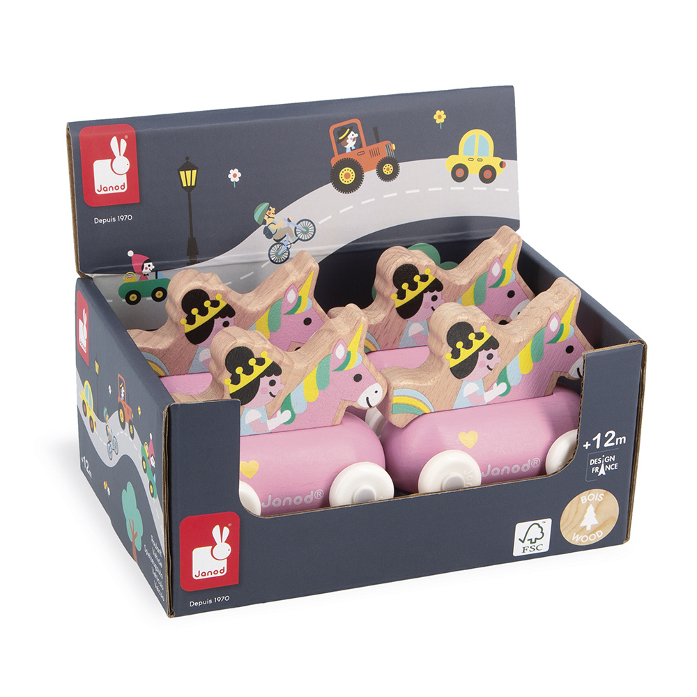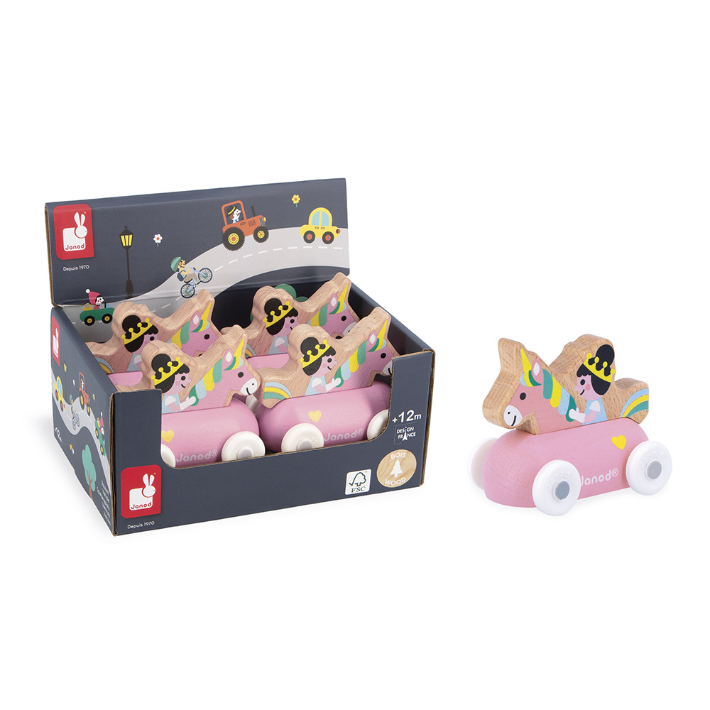 De vorm is speciaal ontworpen voor de allerkleinsten, die hem gemakkelijk bij de bovenkant kunnen vasthouden om hem voort te rollen. De voertuigen zijn perfect om verhalen te verzinnen en de fantasie te ontwikkelen! Baby's hebben er eerst plezier in om ze rond te rollen, daarna vertellen oudere kinderen allerlei avonturen, waardoor hun woordenschat en creativiteit worden ontwikkeld. Deze kleine Janod-auto is onderdeel van onze Cross Roads-collectie: een serie speelmatten met circuits, nog leuker als ze worden aangevuld met onze kubussets en kleine houten voertuigen.