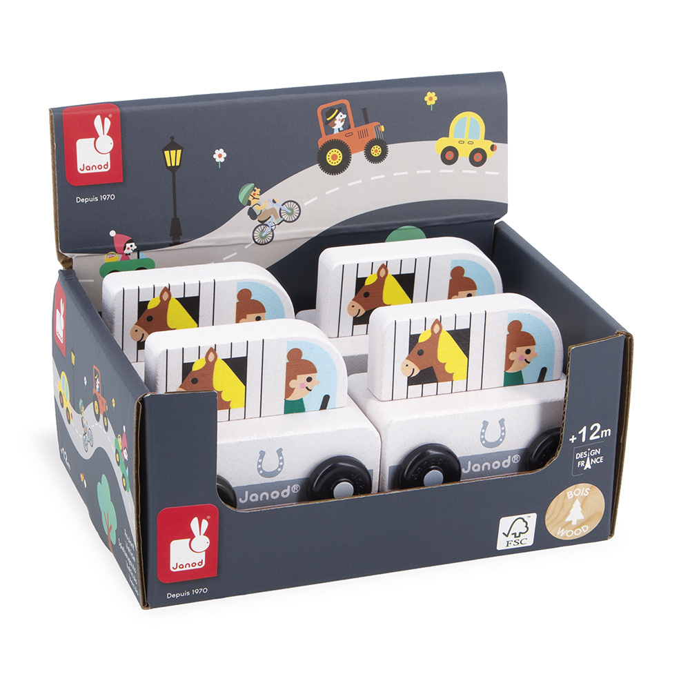 De vorm is speciaal ontworpen voor de allerkleinsten, die hem gemakkelijk bij de bovenkant kunnen vasthouden om hem voort te rollen. De voertuigen zijn perfect om verhalen te verzinnen en de fantasie te ontwikkelen! Baby's hebben er eerst plezier in om ze rond te rollen, daarna vertellen oudere kinderen allerlei avonturen, waardoor hun woordenschat en creativiteit worden ontwikkeld. Deze kleine Janod-auto is onderdeel van onze Cross Roads-collectie: een serie speelmatten met circuits, nog leuker als ze worden aangevuld met onze kubussets en kleine houten voertuigen.