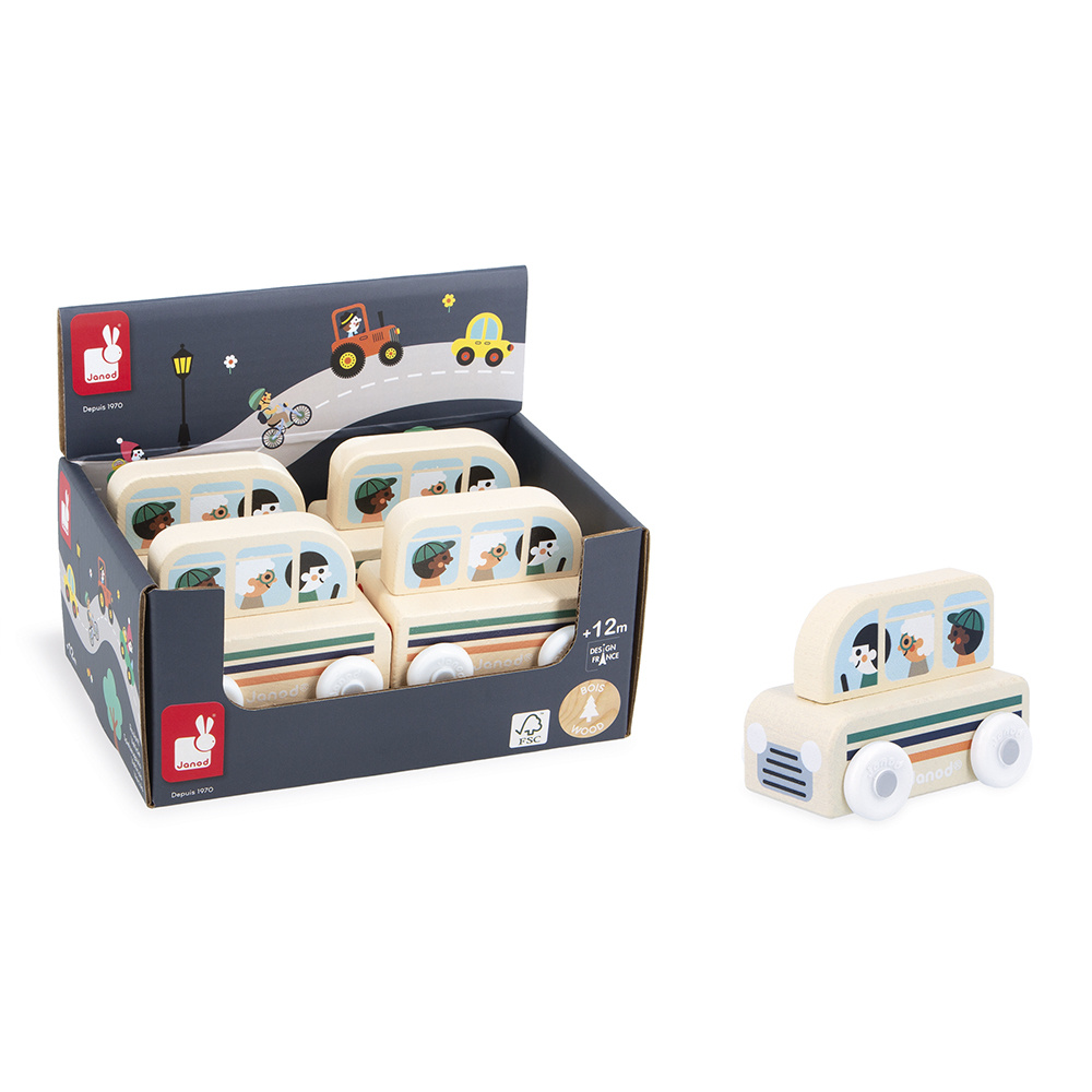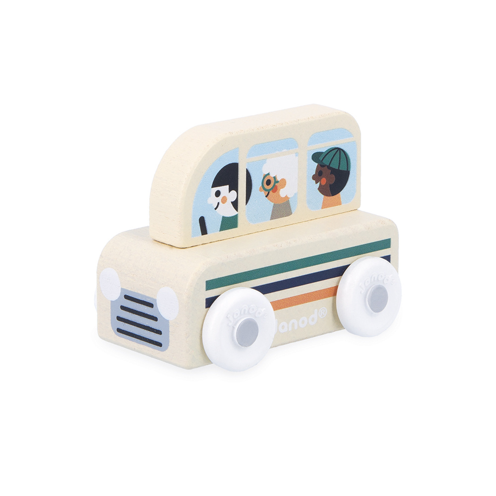 De vorm is speciaal ontworpen voor de allerkleinsten, die hem gemakkelijk bij de bovenkant kunnen vasthouden om hem voort te rollen. De voertuigen zijn perfect om verhalen te verzinnen en de fantasie te ontwikkelen! Baby's hebben er eerst plezier in om ze rond te rollen, daarna vertellen oudere kinderen allerlei avonturen, waardoor hun woordenschat en creativiteit worden ontwikkeld. Deze kleine Janod-auto is onderdeel van onze Cross Roads-collectie: een serie speelmatten met circuits, nog leuker als ze worden aangevuld met onze kubussets en kleine houten voertuigen.