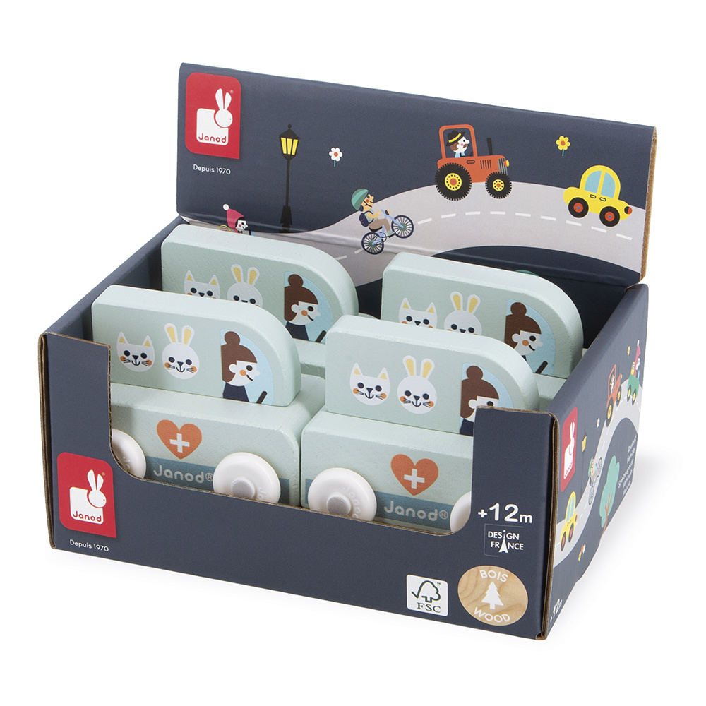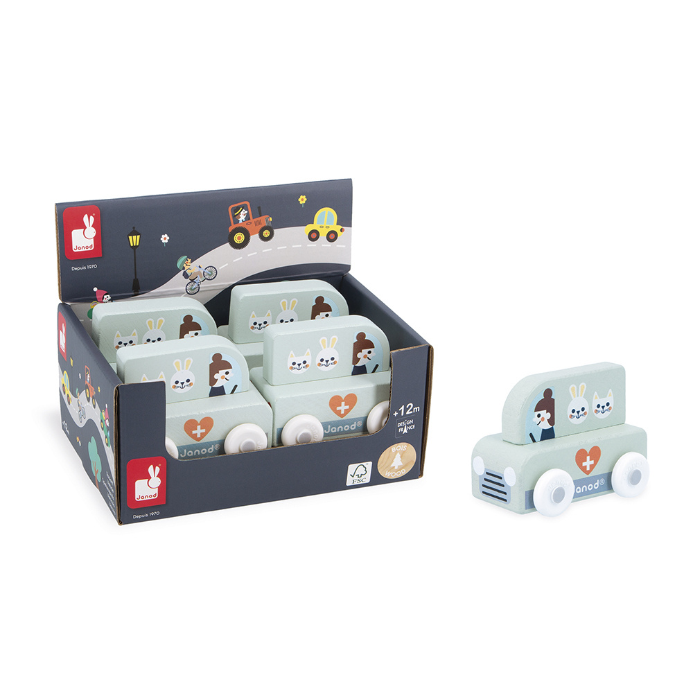 De vorm is speciaal ontworpen voor de allerkleinsten, die hem gemakkelijk bij de bovenkant kunnen vasthouden om hem voort te rollen. De voertuigen zijn perfect om verhalen te verzinnen en de fantasie te ontwikkelen! Baby's hebben er eerst plezier in om ze rond te rollen, daarna vertellen oudere kinderen allerlei avonturen, waardoor hun woordenschat en creativiteit worden ontwikkeld. Deze kleine Janod-auto is onderdeel van onze Cross Roads-collectie: een serie speelmatten met circuits, nog leuker als ze worden aangevuld met onze kubussets en kleine houten voertuigen.