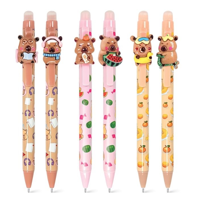 Uitwisbare balpen met grappig Capibara figuurtje aan de pen. Inclusief gum.