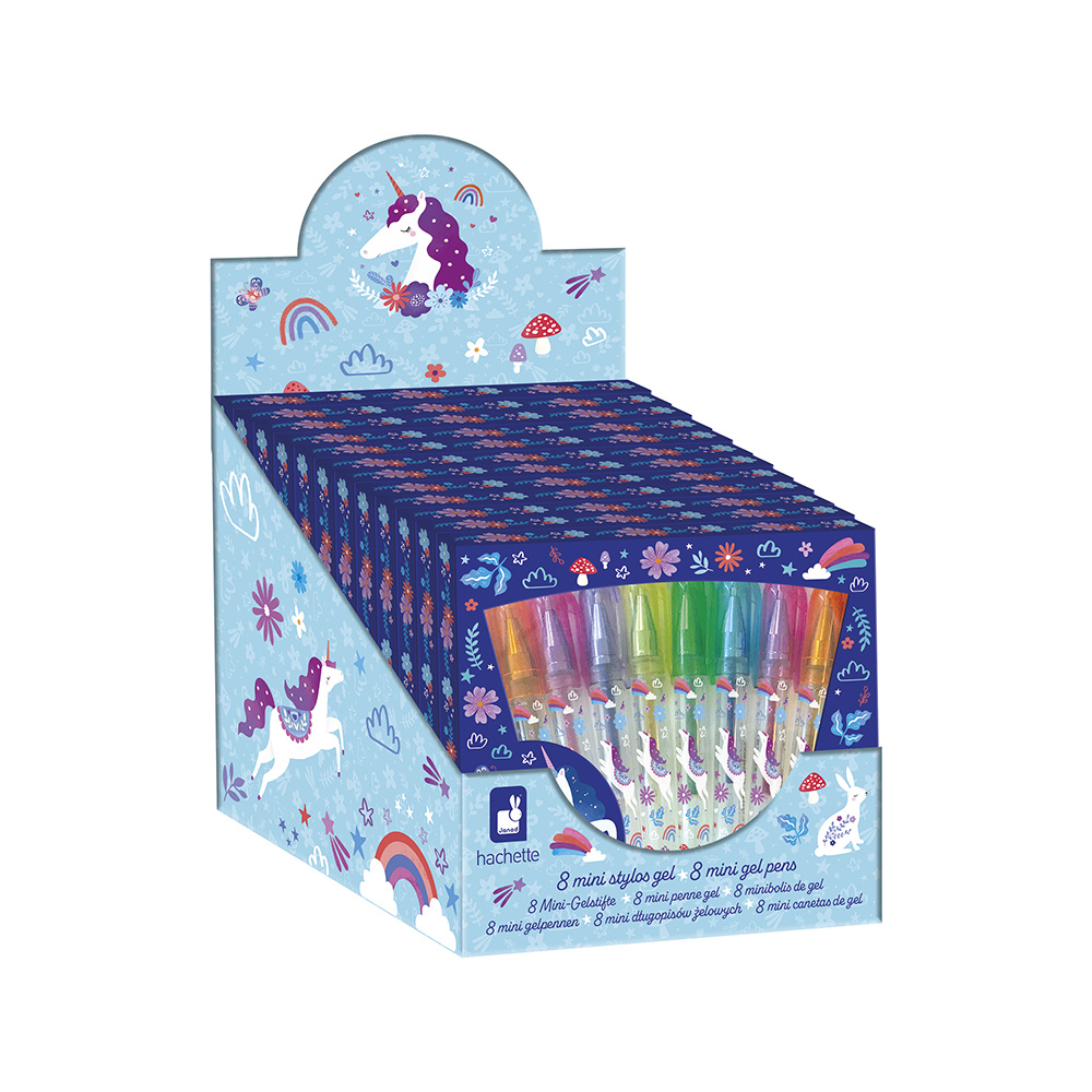 Maak plaats voor glitter in notitieboekjes! Perfect om stijlvol te schrijven, deze 8 pennen zijn versierd met een mooi Dreamland-motief. Ze kunnen worden opgeborgen in hun mooie kartonnen etui of in een etui. Om tekeningen te laten schitteren of kleurrijke woordjes te schrijven, zijn gelpennen perfect met hun glittereffect bij het schrijven op papier!