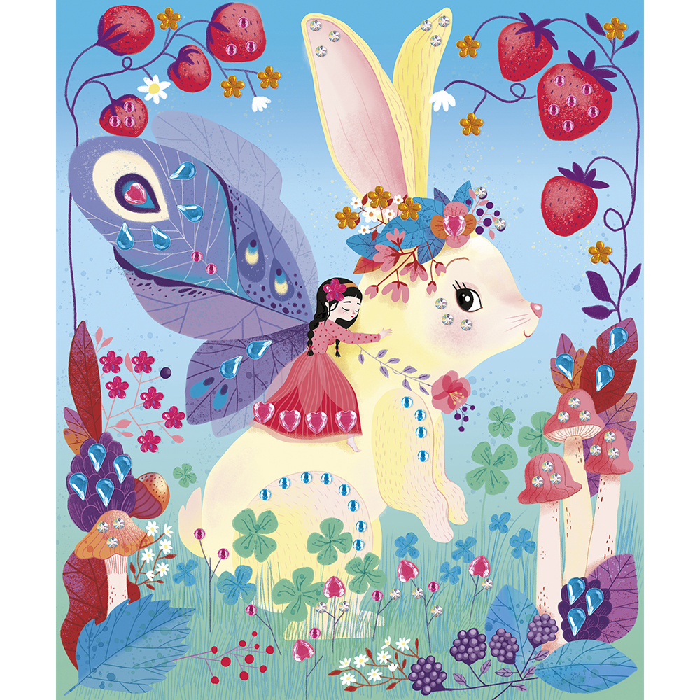Breng de magie terug naar sprookjesland met kleurrijke strass-steentjes! Deze creatieve set is ideaal voor kinderen van 5 jaar en ouder. Door deel te nemen aan de activiteit ontwikkelen ze hun creativiteit en behendigheid, evenals hun geduld en het vermogen om patronen te reproduceren en instructies op te volgen. Met deze creatieve set kunnen ze 3 borden met feeënthema versieren met zelfklevende strass-steentjes in verschillende vormen en kleuren: voor een oogverblindend magisch effect! Het pakket bevat: 3 afbeeldingen en 300 strass-steentjes in verschillende vormen en kleuren (cirkels, harten, druppels, bloemen). Er is ook een boekje met patronen en instructies inbegrepen om kinderen door de activiteit te leiden. Een paddenstoelenhuis, een veld met bloemen of een konijnenvriendje dat staat te wachten om te schitteren! Het versieren van elke afbeelding duurt ongeveer 15 minuten. Nu kunt u een rustige, ontspannende activiteit aanbieden om de creativiteit van kinderen aan te moedigen! Ontdek de wereld van de collectie "Magic Fairies", kits voor creatieve hobby's van kinderen en decoratieworkshops met als thema feeën, in een zachte, bloemige stijl. Voor dromerige creatieve middagen!