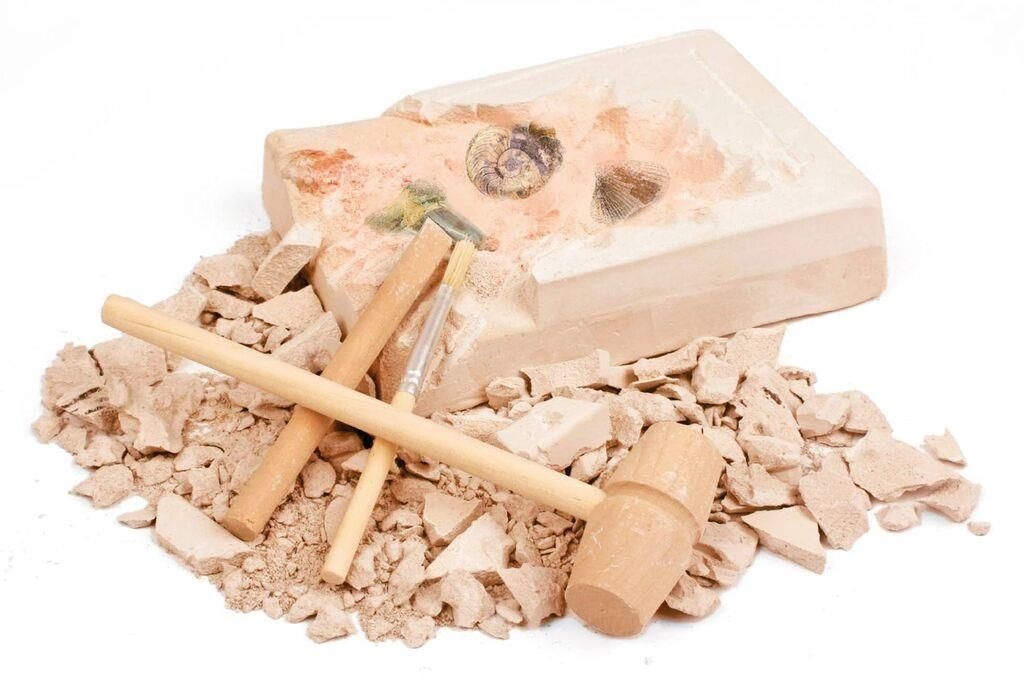 Zo wordt de kinderkamer een opgravingsplek: De grote fossielenopgravingsset bevat vijf echte fossielen die wachten om uit het gipsblok te worden verwijderd. Met de meegeleverde gereedschappen kunnen kleine onderzoekers de overblijfselen uit lang vervlogen tijden opgraven en deze kleine stukjes geschiedenis van de aarde van dichtbij bekijken. Tenslotte kunnen de schatten opgeborgen worden in de meegeleverde opbergtas. Jonge paleontologen vinden in het kleurrijke boekje talloze interessante weetjes over verschillende soorten fossielen.