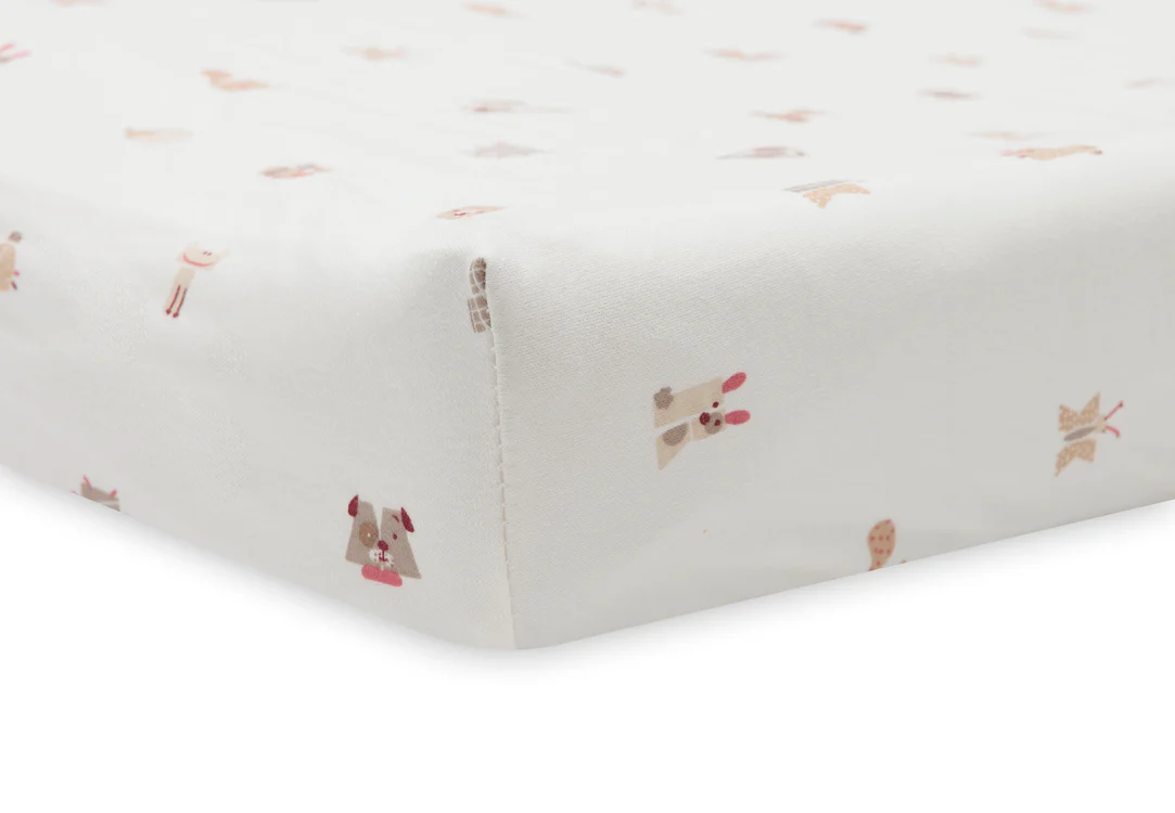 Met deze aankleedkussenhoes wordt het verschonen van je kleintje een gezellig moment. De hoes is gemaakt van zacht en rekbaar jersey materiaal en heeft een speelse all-over print met lieve diertjes. Dankzij de elastische randen blijft de hoes goed op zijn plek en ligt je baby comfortabel tijdens het verschonen.