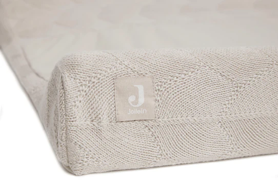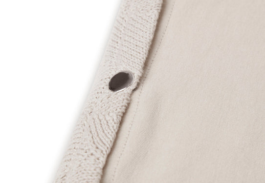 Gebreid aankleedkussen hoes van 100% GOTS. De hoes sluit met drukknoopjes zodat deze goed om het aankleedkussen blijft zitten.