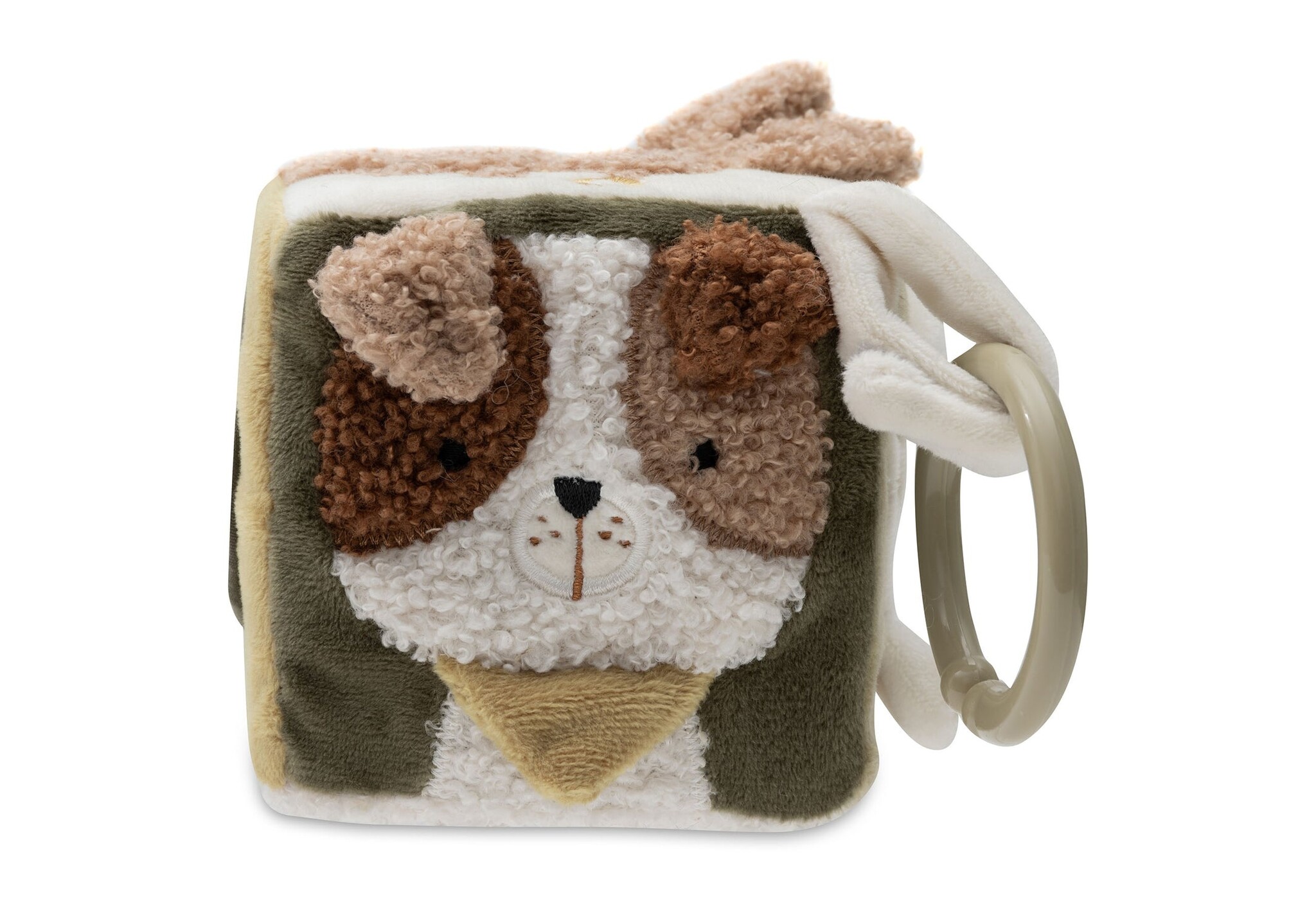 Deze zachte activiteitenkubus uit de Tiny Park collectie is een betoverend speeltje voor je kleintje. Met schattige dieren zoals een kat, hond en uil en interactieve elementen zoals knisperende oortjes en een spiegel, stimuleert het de zintuigen en motorische ontwikkeling van je baby. Een vrolijke en leerzame kubus, perfect voor urenlang speelplezier in de box of onderweg!