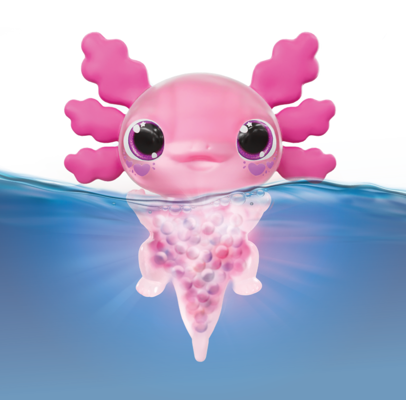 Wanneer je Let’s Glo Axolotl in het water legt zal hij lichtgeven van blijdschap. De Axolotl zal ook net onder het waterniveau blijven drijven. Naast dat de Axolotl lichtgeeft is hij ook nog eens supoer leuk om mee te spelen. De waterparels in zijn buik maakt het een prettig voorwerp om vast te houden. Ook is hij heel elastisch. Trek de Axolotl uit elkaar en zie hem weer terugkeren naar zijn oude vorm.