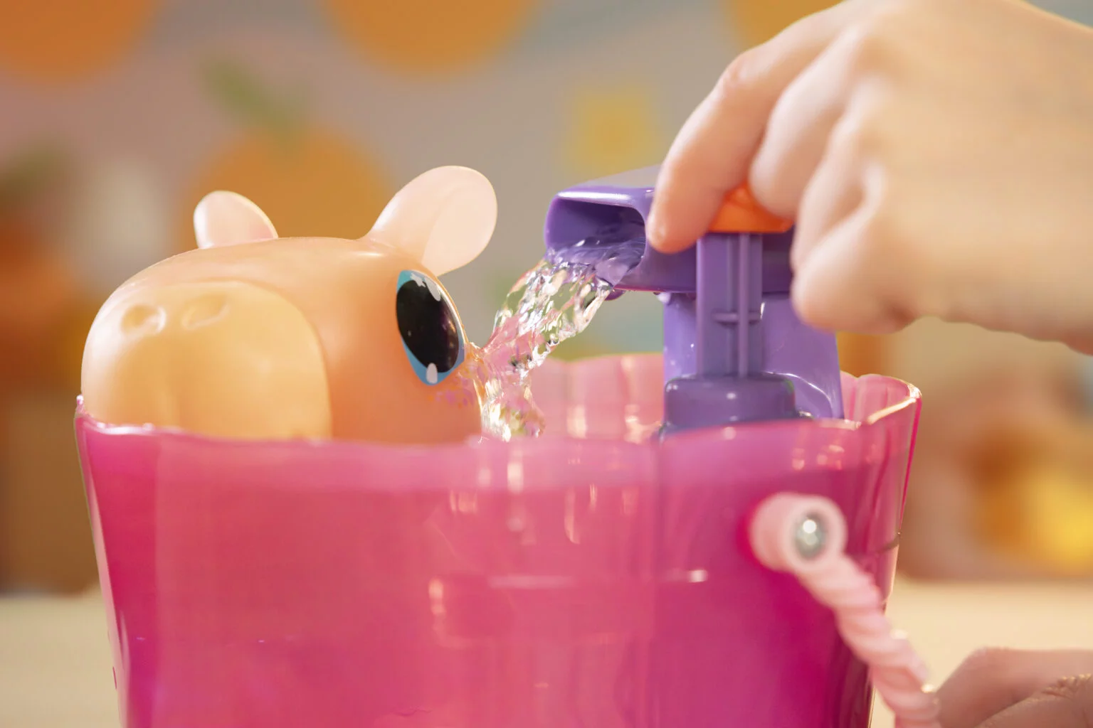 Tijdens zijn Spa Time kan de capybara echt tot rust komen in zijn eigen bad. Druk op de mandarijn en activeer de waterval, zodat hij lekker kan douchen. Met de Let’s Glo Capybara beleef je eindeloos veel waterpret, zowel in bad als in zijn eigen spa.