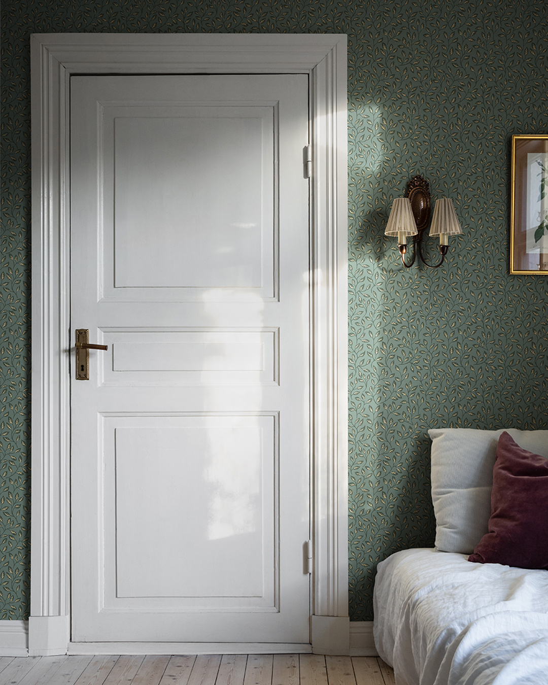 Een opvallend mooi donkergroene achtergrond met een zacht patroon dat een klassieke elegantie geeft aan alle ruimtes. De zachte kleuren van het behang creëren een ontspannen oase in je keuken, woonkamer of slaapkamer.