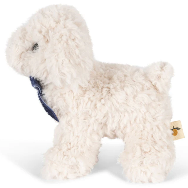 Dit schattige witte knuffelhondje van Konges Sløjd is een zacht en loyaal eerste vriendje voor je kleintje. Hij is gemaakt van 100% polyester, waardoor hij heerlijk zacht en knuffelbaar is.