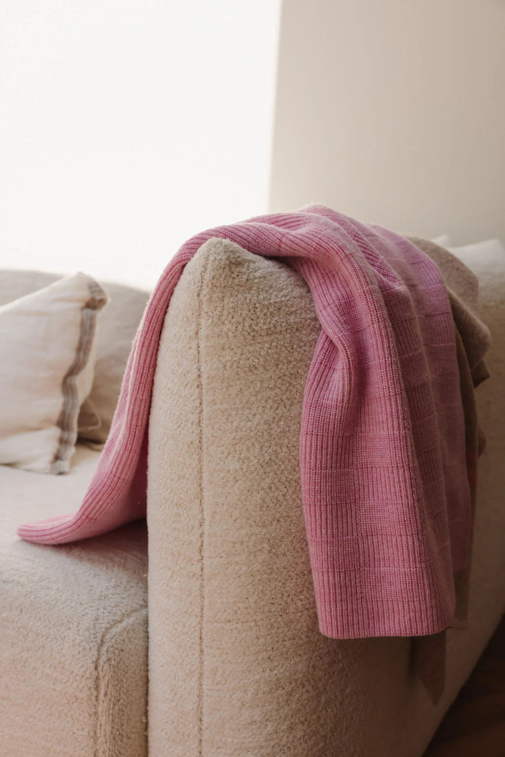 Een dikke en zachte deken om je baby heerlijk warm te houden. De deken heeft een patroon van rechthoekige vormen in een geribbelde textuur.