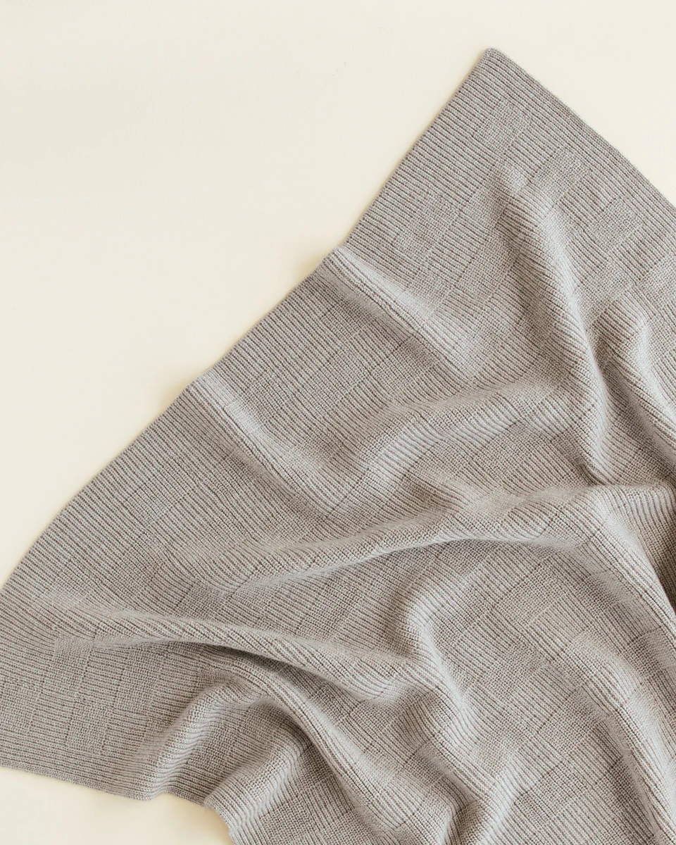 Een dikke en zachte deken om je baby heerlijk warm te houden. De deken heeft een patroon van rechthoekige vormen in een geribbelde textuur.