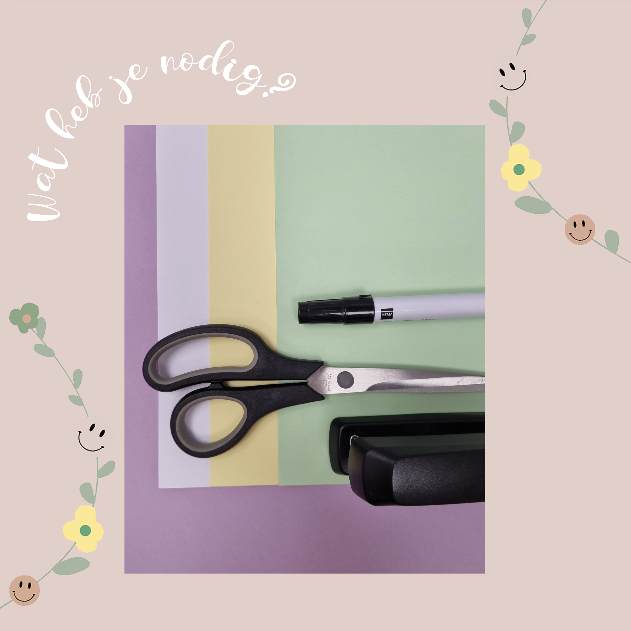 Papier (wit, geel en een kleur naar keuze)