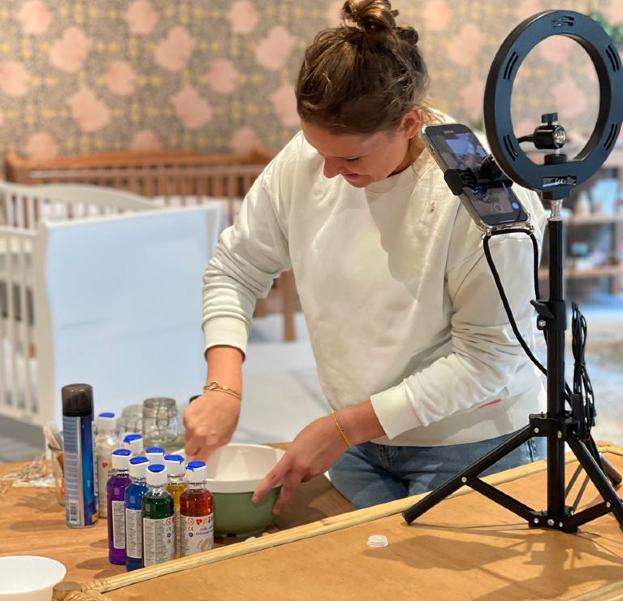 Oke, maar met alleen dit kom ik ook niet altijd weg dus dan komt het leuke gedeelte uit de kast; de versiering! Meestal shop ik glitters en kralen voor een prikkie bij de action. Door de glitters toe te voegen krijg je pas echt een bijzonder geheel; top moeder ben je! 10 punten.