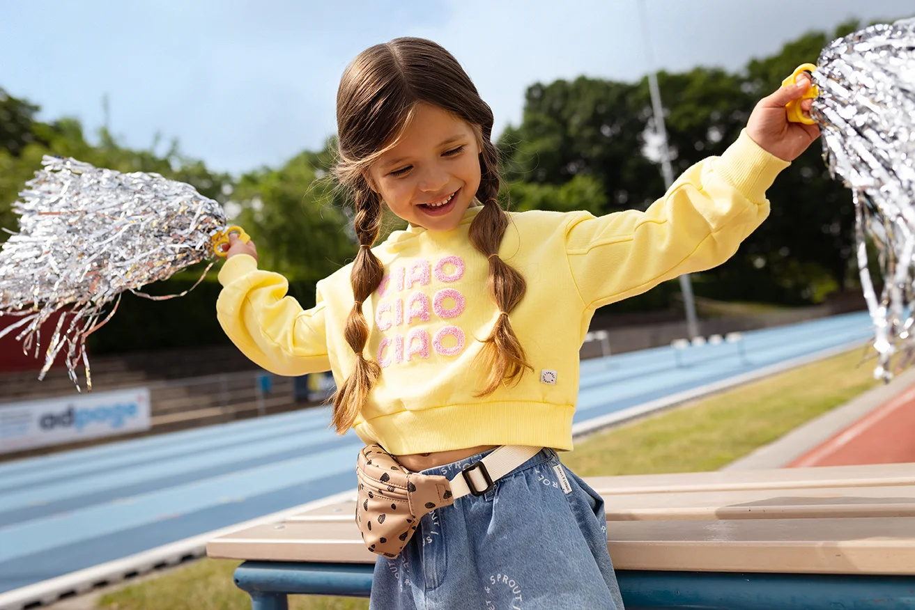 Boxy hooded girls sweatshirt - Pastel yellow