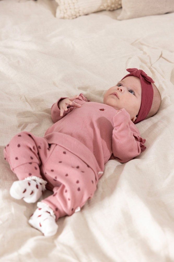 Broek ajour rib AOP - Ladybug - Roze