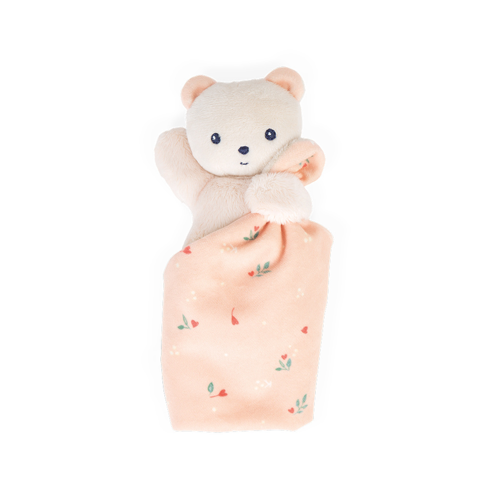 Deze schattige beer, omwikkeld in een vierkant van zachtheid, zal de beste knuffelvriend van de baby worden. Gemaakt van materialen en een vulling van gerecyclede plastic flessen, deze knuffel is 100% milieuvriendelijk. De beer met haar kleine zachte lichaam van micro-velours is eenvoudig vast te pakken door babyhanden. De vierkante knuffeldeken die ze in haar handen houdt, is bekleed met een draaikolk van liefdesbladeren. Deze aanhankelijke opdruk bevindt zich tevens in de oren van de beer en versterkt het geheel. Gepresenteerd in een mooie doos, die tevens als opbergdoos gebruikt kan worden. Dit is de perfecte knuffel om een 100% ‘eco-lovely’ cadeau te geven.