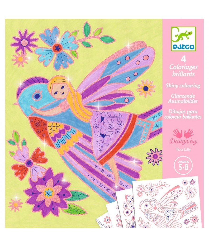 Dit is een kleuractiviteit waarbij je wegdroomt tijdens een betoverende wandeling door een sprookjesland. Het kind kleurt de 4 schilderijtjes in die versierd zijn met goudkleurige lak. De gouden cirkels met reliëf vergemakkelijken het inkleuren: ze leiden de punt van de stift om te voorkomen dat het kind buiten de lijntjes gaat!