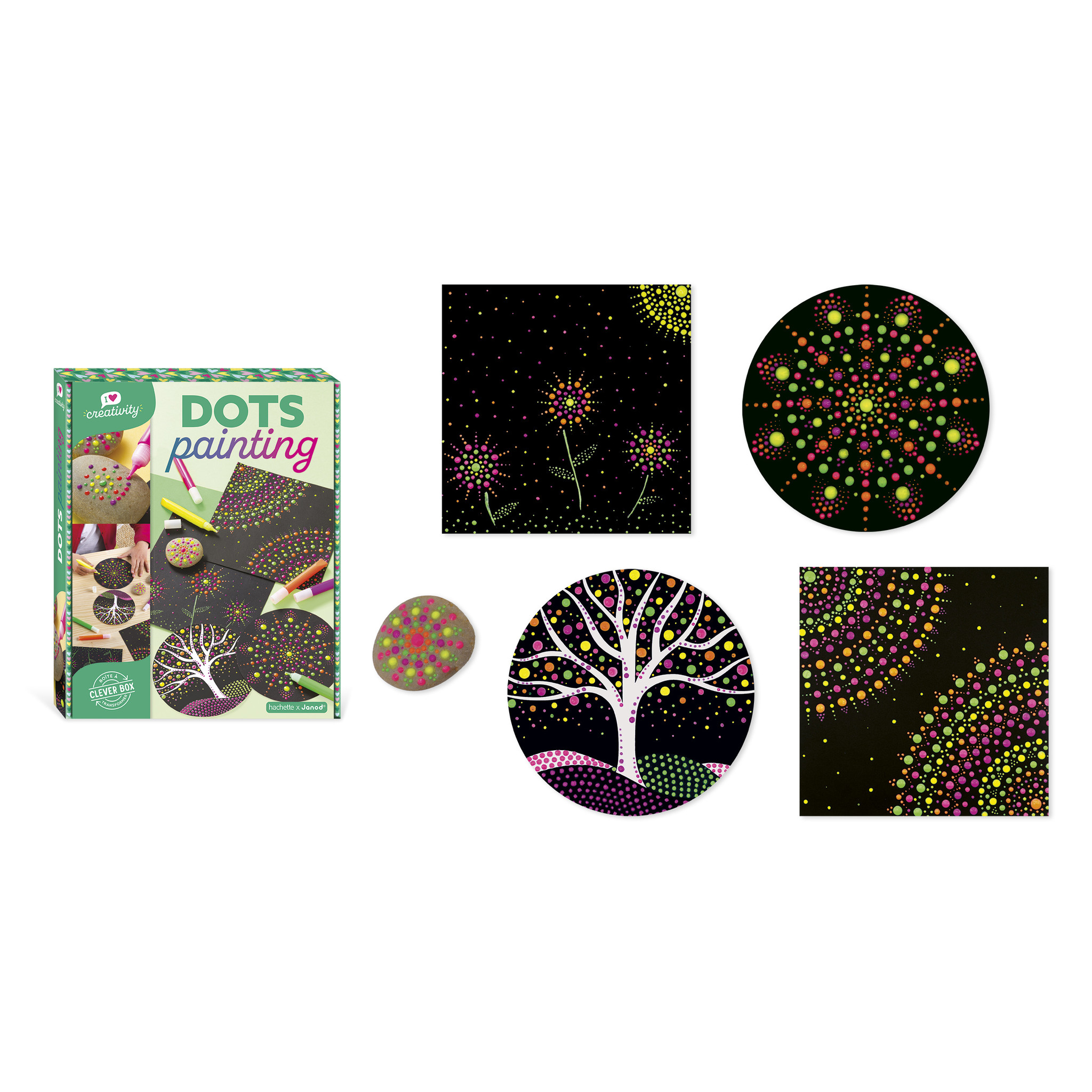Breng leven en kleur op schoolborden dankzij de dot-painting-techniek, super trendy! Met deze creatieve doos kun je 4 schoolborden en een kiezelsteen decoreren met verfstippen in relief van verschillende grootte. 5 tubes 3D-verf en een bamboe-gereedschap zijn inbegrepen, zodat kinderen vanaf 8 jaar met finesse en precisie aan mooie schilderijen kunnen werken. Slim met de Clever Box, kun je de bouwdoos omtoveren tot een lijst voor een van de creaties! Het ontwikkelt creativiteit en fijne motoriek.