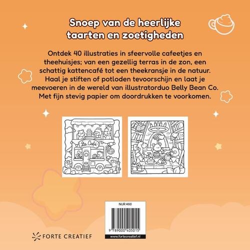Snoep van de heerlijke taarten en zoetigheden met 40 illustraties in sfeervolle cafeetjes en theehuisjes; van een gezellig terras in de zon, een schattig kattencafé tot een theekransje in de natuur. Haal je stiften of potloden tevoorschijn en laat je in dit kleurboek meevoeren in de wereld van illustratorduo Belly Bean Co.