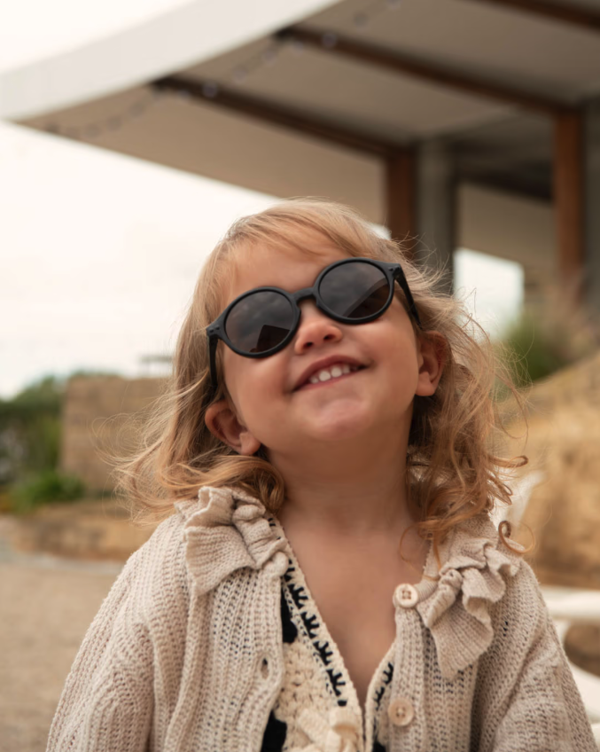 De #d Black Road kinderzonnebril combineert een glanzend zwart montuur met bruine gepolariseerde lenzen, en biedt 100% bescherming tegen UV-stralen en schittering. De tijdloze ronde vorm zorgt voor dagelijks comfort en begeleidt kleintjes gemakkelijk op hun eerste uitstapjes, uitjes en vakanties.