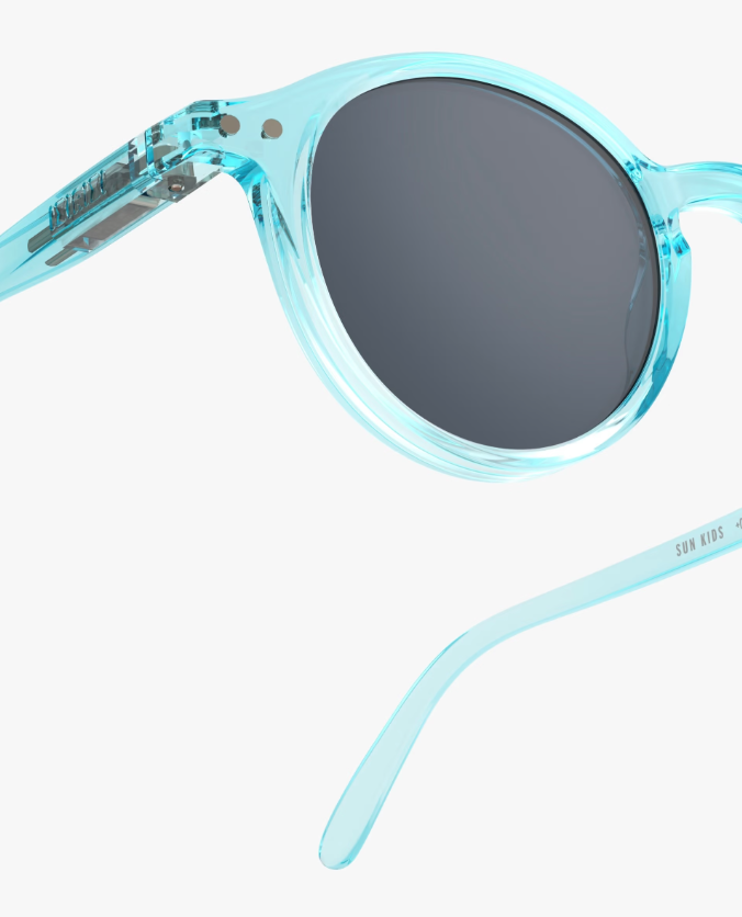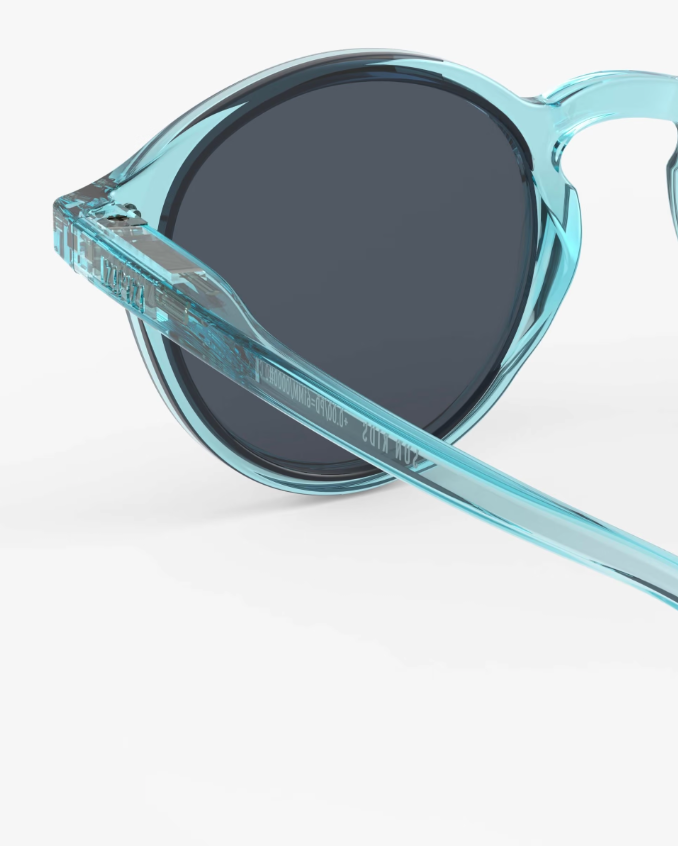 De #d Turquoise Stone kinderzonnebril, met zijn ronde en tijdloze vorm, heeft een glanzend montuur in een levendige, op mineralen geïnspireerde tint, gecombineerd met grijze glazen. Deze zonnebril beschermt de ogen van kinderen van 3–5 jaar tijdens wandelingen, uitstapjes en buitenavonturen.