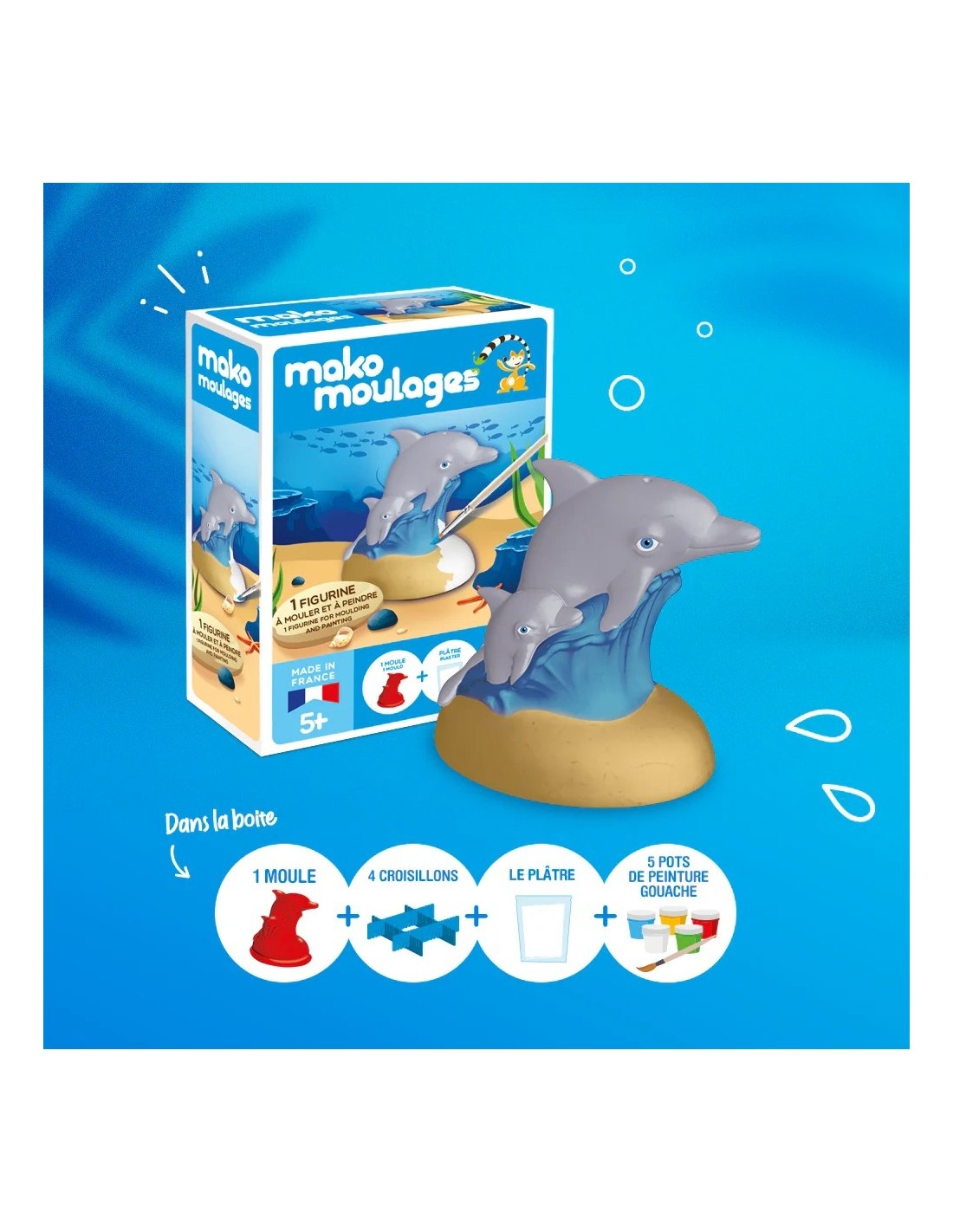 Duik in de wereld van de zee met de Mako Moulages – Dolfijn & Baby: giet je eigen dolfijn met haar baby in gips en geef ze kleur met de meegeleverde verf. Dankzij de herbruikbare latexmal en het compacte formaat is dit een heerlijk knutselproject voor een rustige middag of als creatief cadeautje.