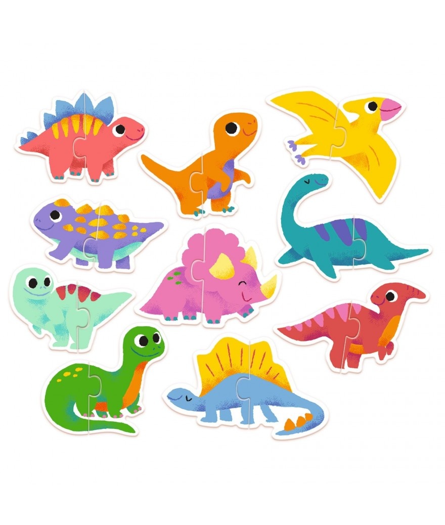 Een eerste puzzelspel om silhouetten te combineren rond een favoriet thema. De duo-puzzel Dinosaurussen is een educatieve puzzel waarbij het kind de 2 delen van het lichaam van een schattige dino moet combineren. De eenvoudige en ludieke duo-trio-puzzels zijn spelletjes waarbij ideeën gecombineerd worden, voor kinderen vanaf 2 jaar. Elke doos stemt overeen met een combinatie om deze goed te begrijpen en te beheersen. De dikke stukken kunnen door de kinderhandjes gemakkelijk vast gepakt worden en de opbergdozen kunnen overal mee naartoe!
