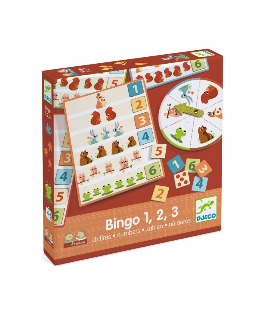 Bingo is een combinatie- en verzamelspel met als thema cijfers en bosdieren. Elke speler kiest een plankje en legt dit voor zich neer. De fiches en het rad worden in het midden van de tafel gelegd. De jongste speler begint en laat het rad draaien. Hij/zij neemt de fiche die aangegeven wordt door het rad en legt deze op zijn/haar plankje. Daarna is de volgende speler aan de beurt en zo gaat het spel verder. De speler die als eerste zijn plankje vol heeft, wint het spel.