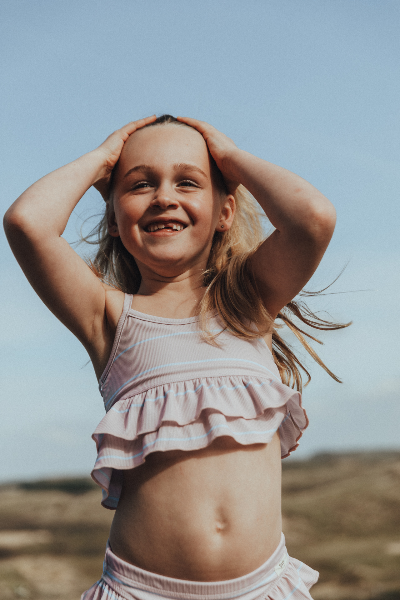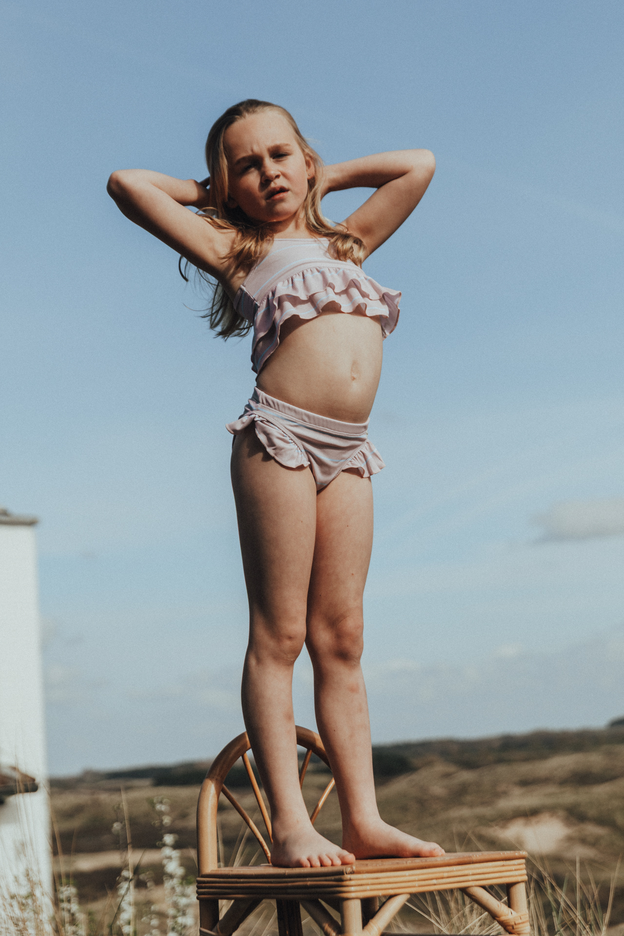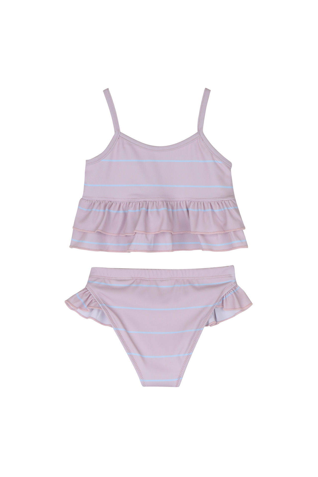Speelse bikini met subtiele streep en ruffle details voor een lieve, zomerse look. De zachte, stretchy stof zorgt voor een comfortabele pasvorm, perfect voor zonnige stranddagen.