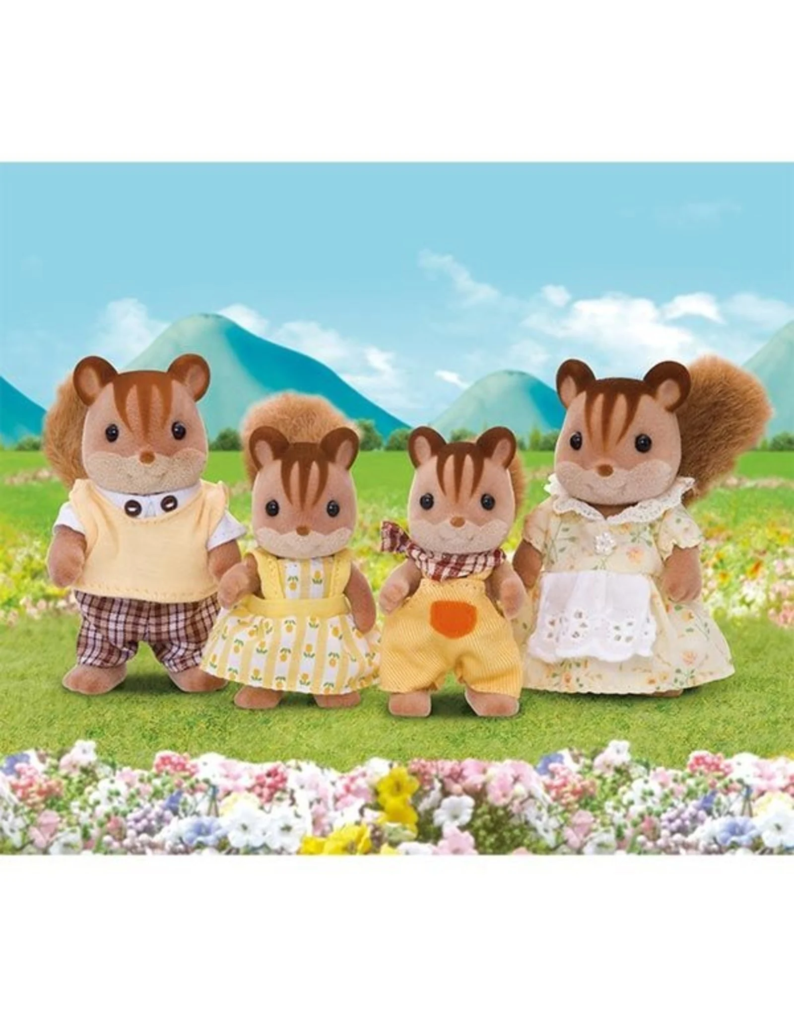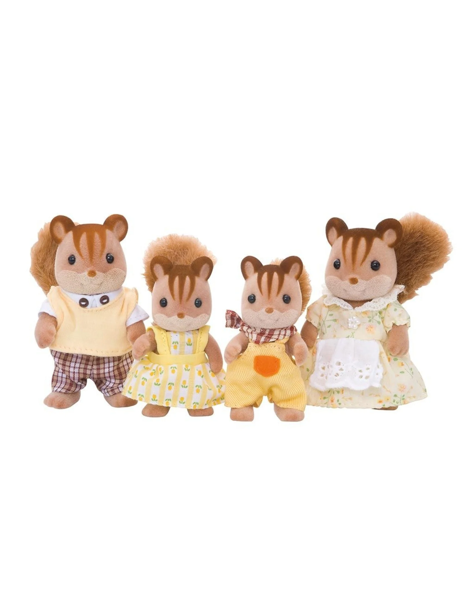 De Familie Walnoot Eekhoorn bestaat uit een vader, moeder, dochter en zoon.