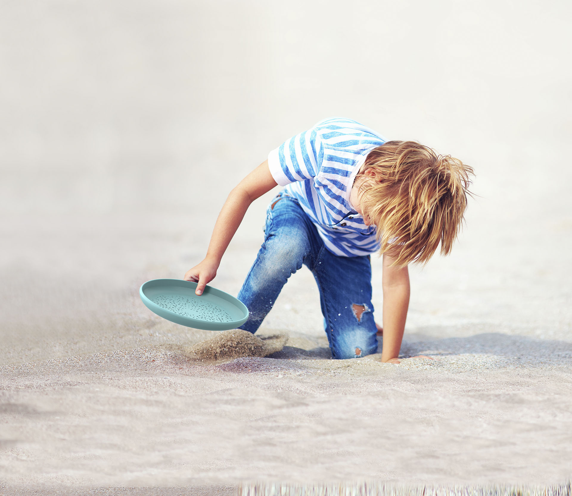 Deze veilige en kindvriendelijke frisbee kun je als zandzeef gebruiken!