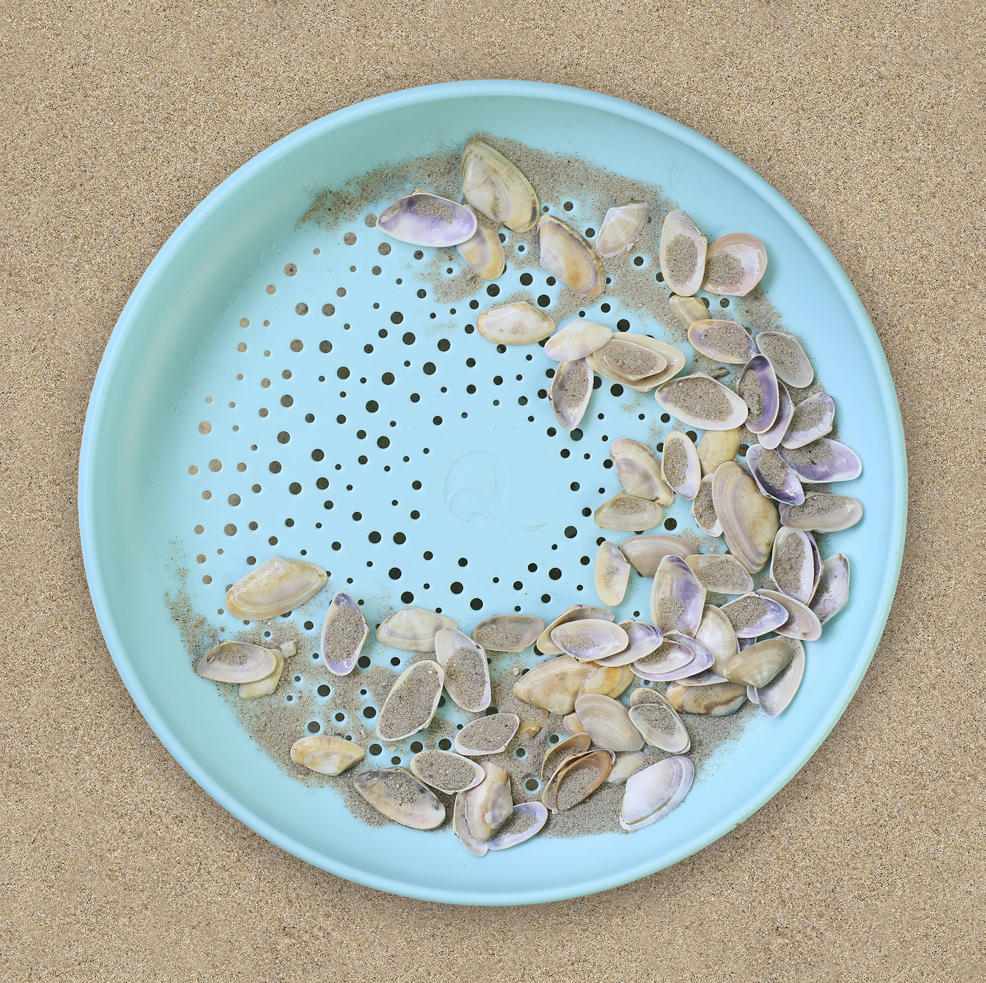Dankzij de brede diameter van 25 centimeter en het typische gaatjespatroon van Quut doet die ook nog eens dienst als superhandige zandzeef.