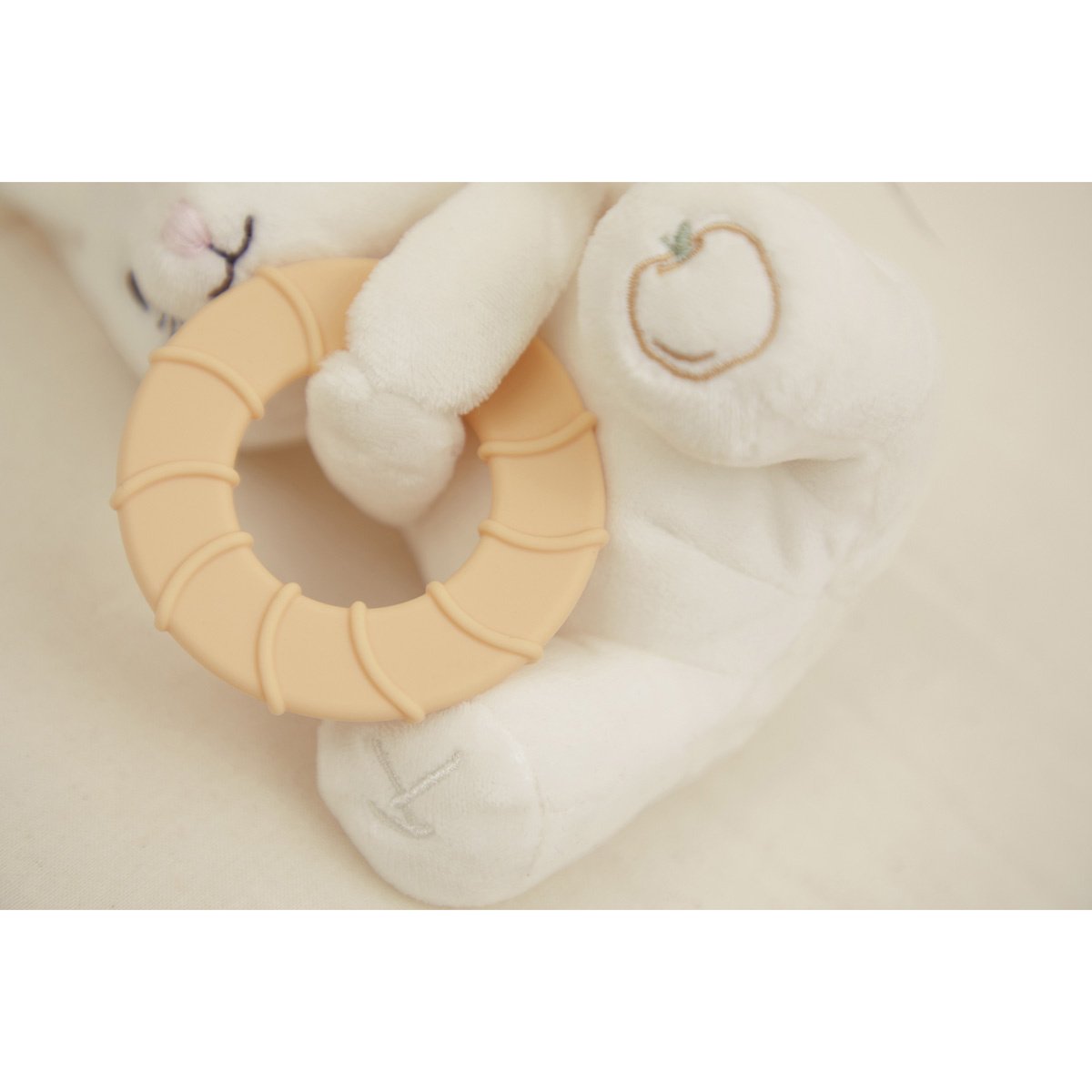 Het perfecte knuffelbeestje voor doorkomende tandjes! Compleet met een bijtring, biedt het zowel comfort als verlichting voor de baby. Tussen zijn pootjes houdt deze schattige muis een getextureerde siliconen ring vast, ontworpen om het pijnlijke tandvlees van de baby zachtjes te masseren. De ring is 12 cm groot en is gemakkelijk vast te pakken voor kleine handjes.