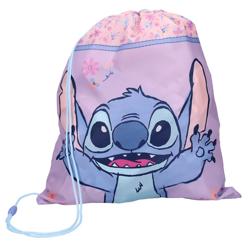 Begin kleurrijk aan de gymles met deze vrolijke gymtas uit de “Spring Smiles” collectie! Op de voorkant schittert een grote, speelse print van Stitch. De gymtas is uitgevoerd in zachte roze en paarstinten en is dankzij de trekkoordjes aan de bovenzijde eenvoudig te openen, sluiten én te dragen. Perfect voor gymles, zwemles of een dagje uit!