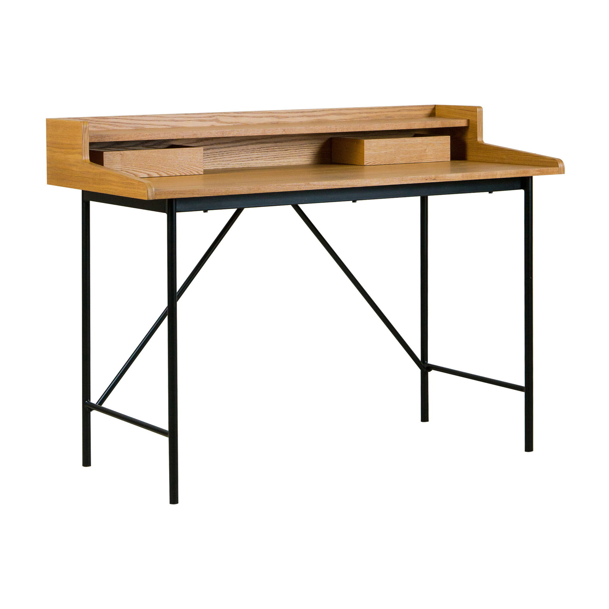 Het Hai No Ki bureau is vervaardigd uit es-gefineerd MDF met massief essenhouten details. Deze materiaalkeuze zorgt voor een stevige constructie en een duurzame afwerking die geschikt is voor dagelijks gebruik. Het bureau is ontworpen met oog voor stabiliteit en een lange levensduur.