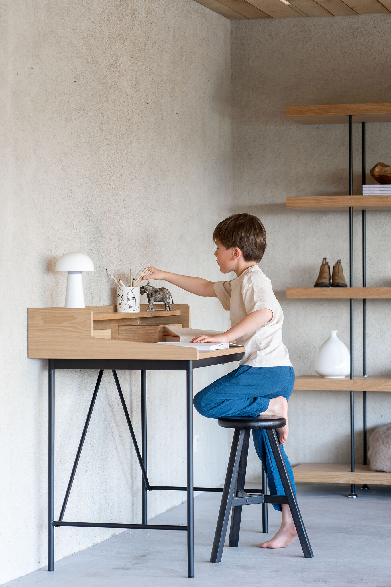 Het Hai No Ki bureau vormt een rustige en praktische plek waar je kind kan leren, spelen en zich ontwikkelen, binnen een omgeving die overzicht en balans uitstraalt.