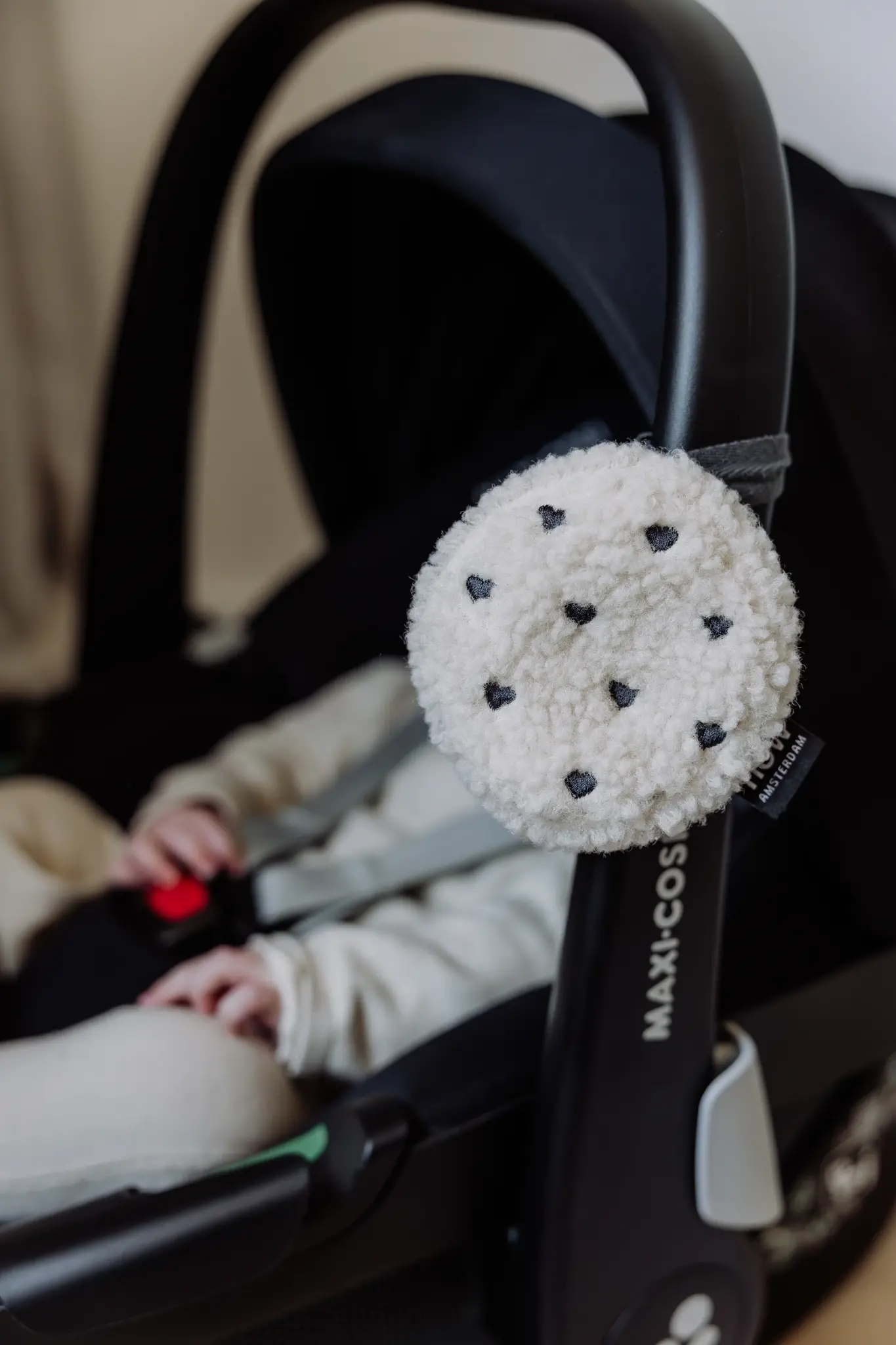 De comforter on the go is een smallere versie om makkelijk met je mee te nemen. Een knuffel met muziekdoosje die er voor zorgt dat je kindje zich veilig en kalm voelt onderweg. Je kunt het knuffeltje makkelijk bevestigen aan je Maxi Cosi of kinderwagen met het touwtje. Het muziekdoosje komt met 2 geluiden: Hartslag en witte ruis. Met een knop kun je het muziekdoosje aanzetten, het volume aanpassen en het geluid kiezen. Omdat de knop extra groot is, is hij makkelijk te bedienen, zelfs als hij in de knuffel zit.