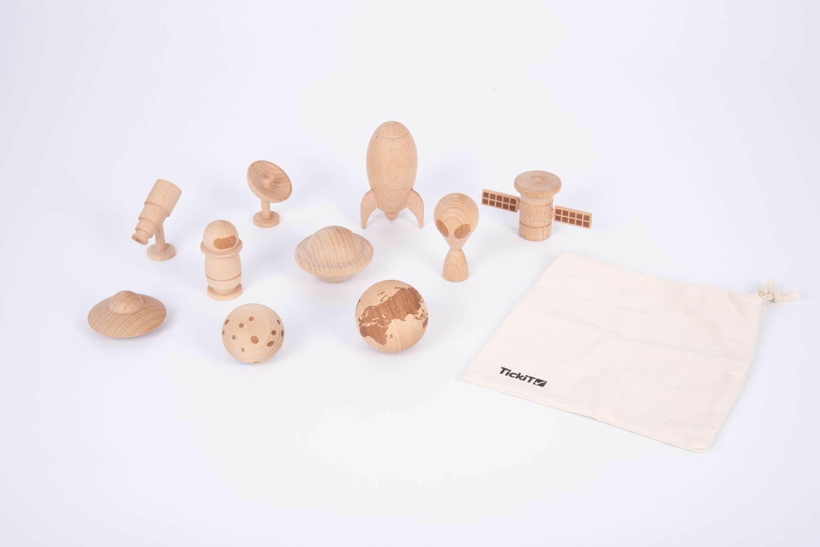 Onze tickit® De houten ruimteavontuurset is niet van deze wereld! De ruimteobjecten zijn gemaakt van glad massief beukenhout en zijn perfect voor kleine ontdekkingsreizigers met een grote fantasie.